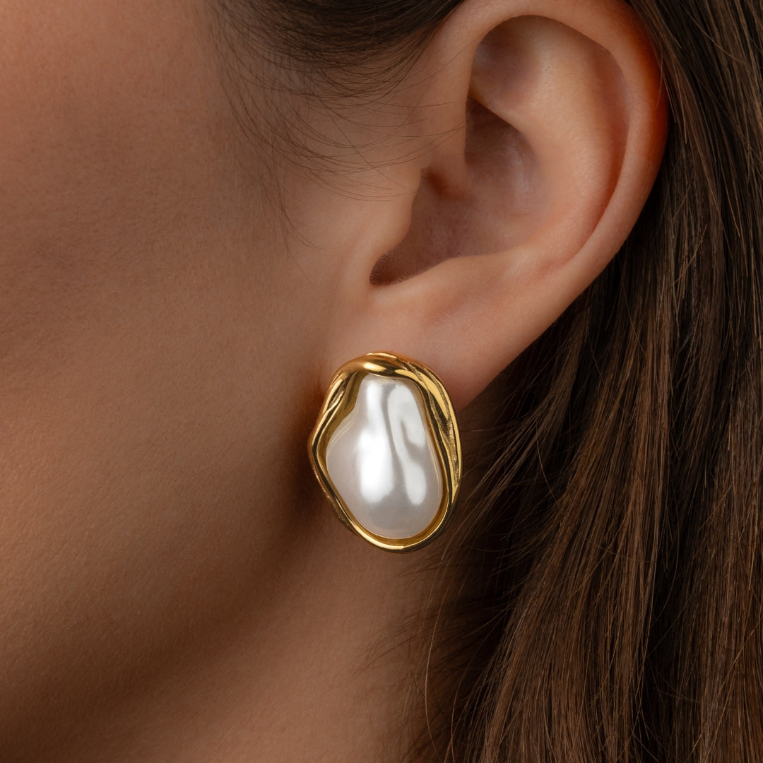 Presença Magnética: Com um tamanho statement (médio/grande), o Aurora Pearl ilumina o rosto e transforma até a combinação mais básica de jeans e t-shirt branca em um visual de editorial.
