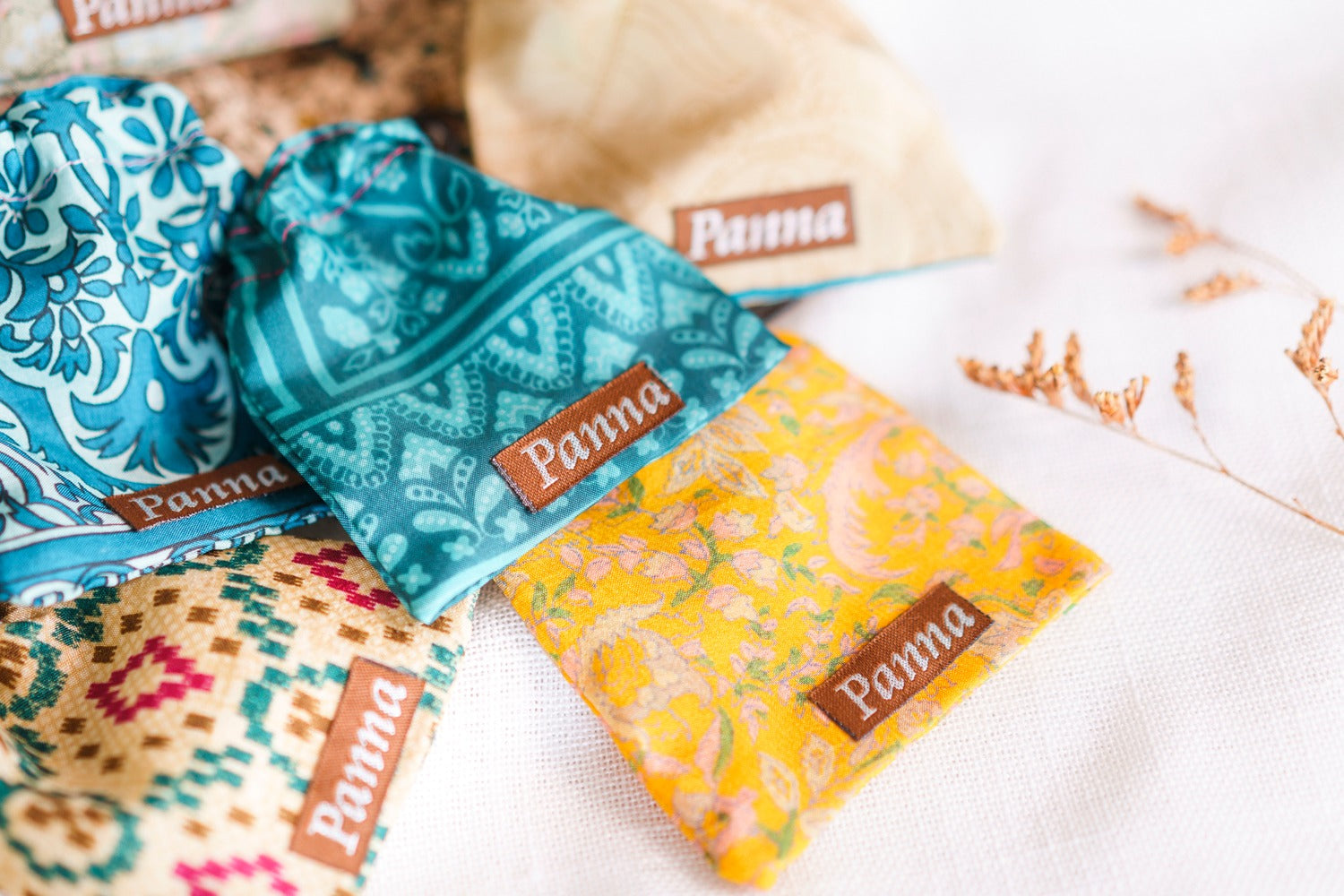 Todos os nossos artigos vão embalados dentro destes saquinhos, temos milhares de padrões, todos eles únicos. Feitos com excesso de tecidos que seriam de outra forma desperdiçados. São tão bonitos que pode reutilizá-los. Caso prefira, temos também caixas de presente disponíveis. Basta adicionar no carrinho.