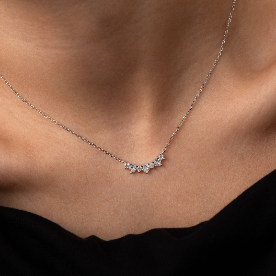 O Colar Crystal Bloom é uma joia de Prata 925 que captura a essência de uma flor em plena floração. O seu design curvo, cravejado com zircónias cintilantes, cria um efeito visual que é ao mesmo tempo delicado e majestoso.